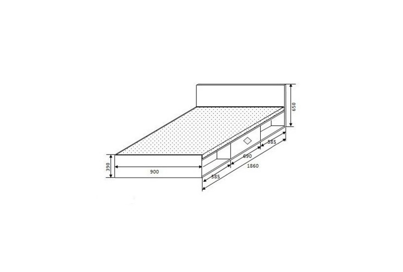 Кровать:900 х 1860 х 650 мм (размер спального места 900 х 1860 мм)