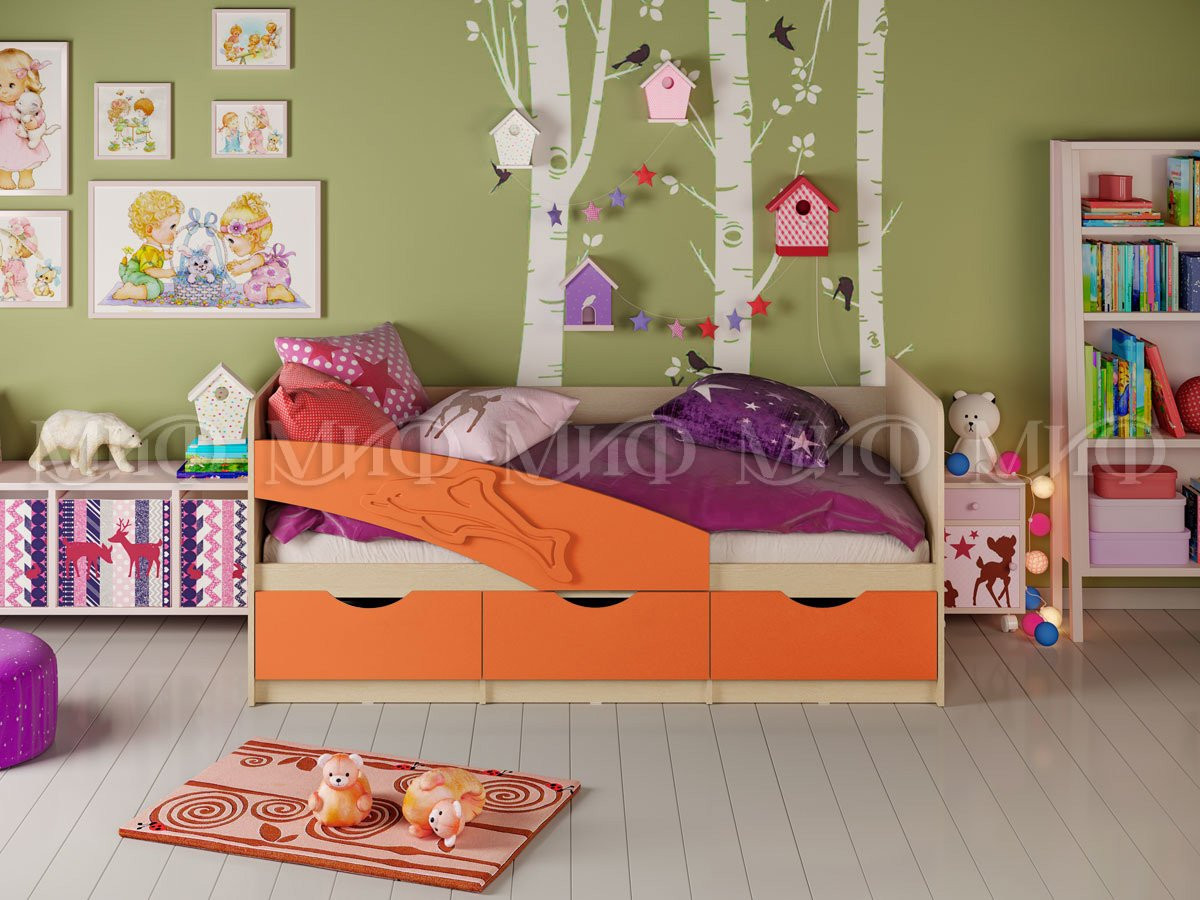Кроватка Дельфин для Ваших детей благодаря небольшому размеру (длина 1,6м, 1.8м, 2,0 м) компактно разместится в детской комнате, и не займёт игровое пространство. Ящики под кроваткой скроют все коробочки и вещи длительного хранения. Особо радует родителей наличие бортика для безопасного сна. Корпус кроватки выполняется всегда в светлом цвете, а фасады можно выбрать. Даже внешне эта кровать выглядит очень уютной. А ограничительная планка делает ее еще и безопасной. Выбирайте любой цвет фасада для создания гармоничного интерьера.