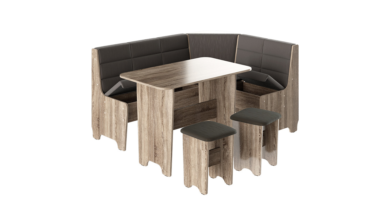 • Обеденная зона "Техас" состоит из удобной угловой скамьи, практичного стола и компактных табуретов.